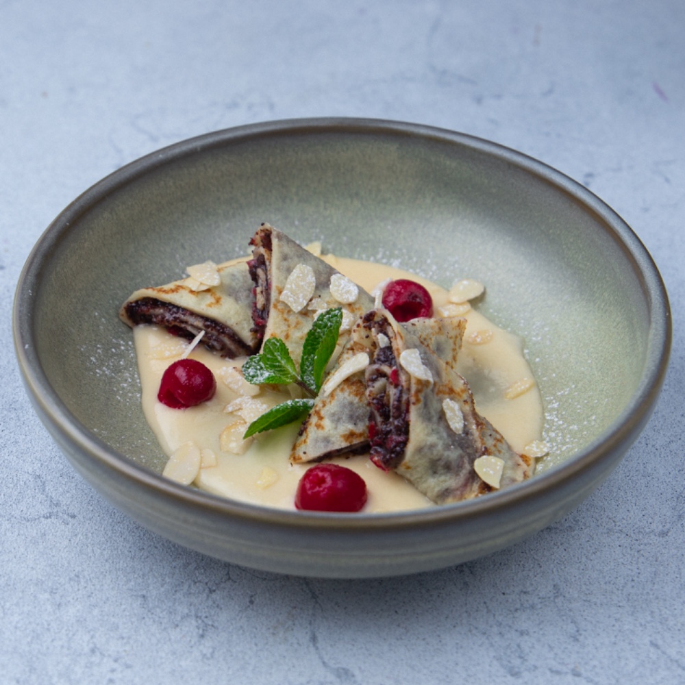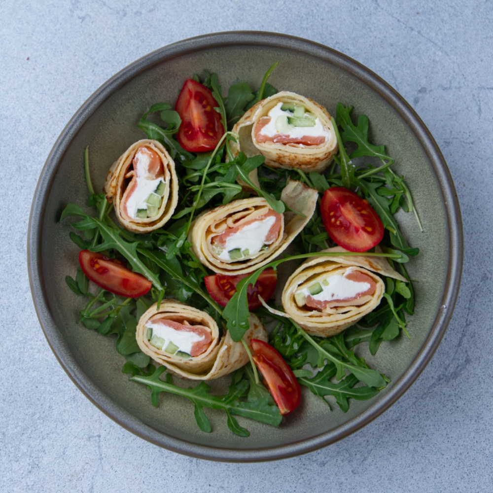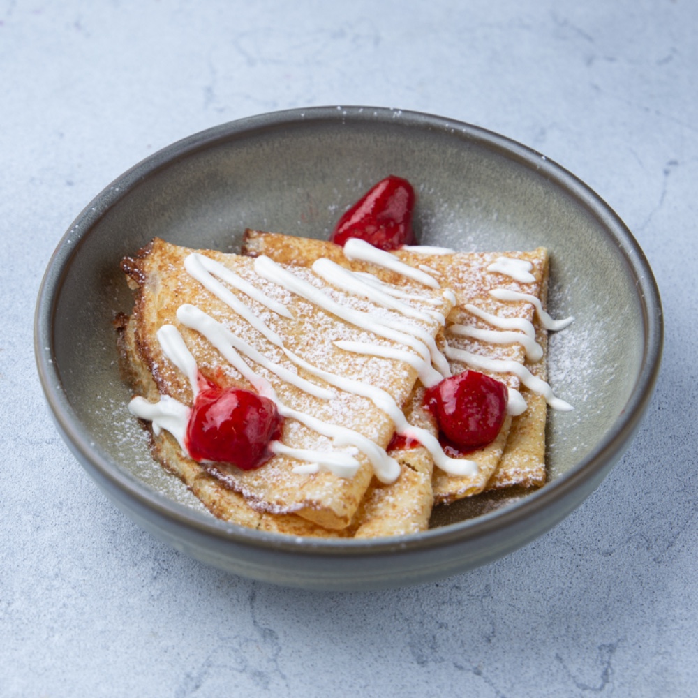 Рол-млинець з нутеллою, бананом і полуничним конфі