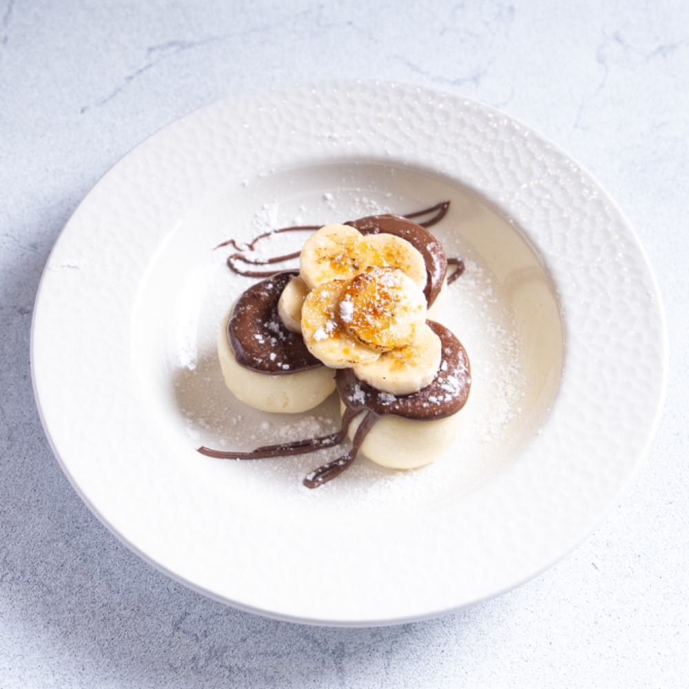 Класичні сирнички з нутеллою і карамелізованим бананом