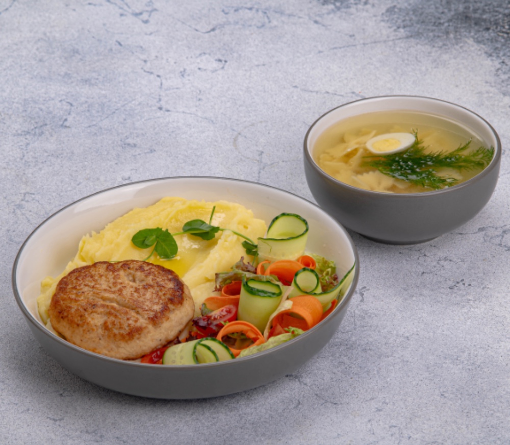 Ланч пюре з курячою котлетою + бульйон у подарунок