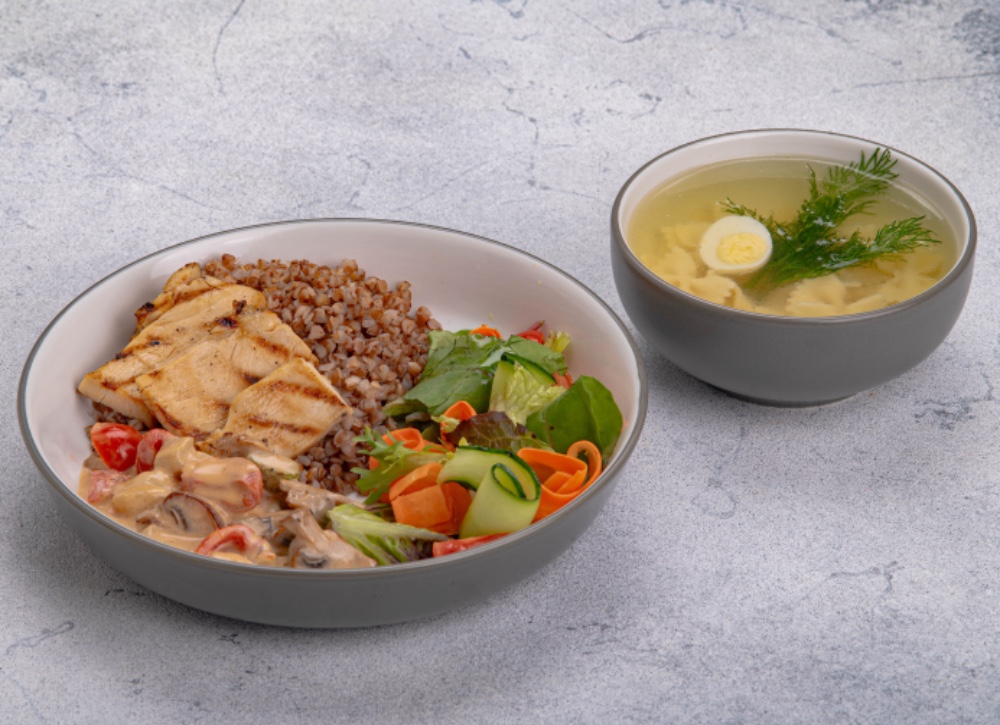 Ланч гречана каша з курячою грудкою + бульйон у подарунок